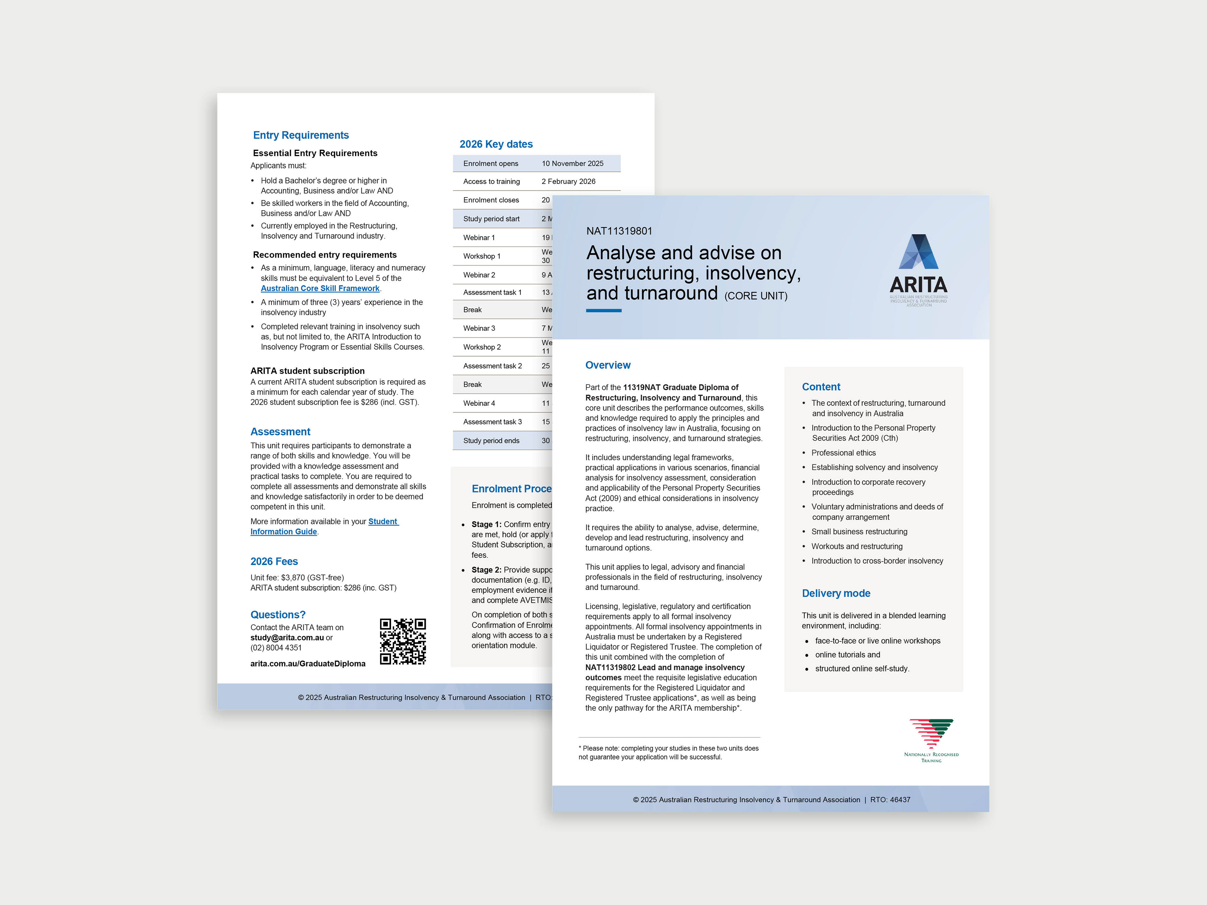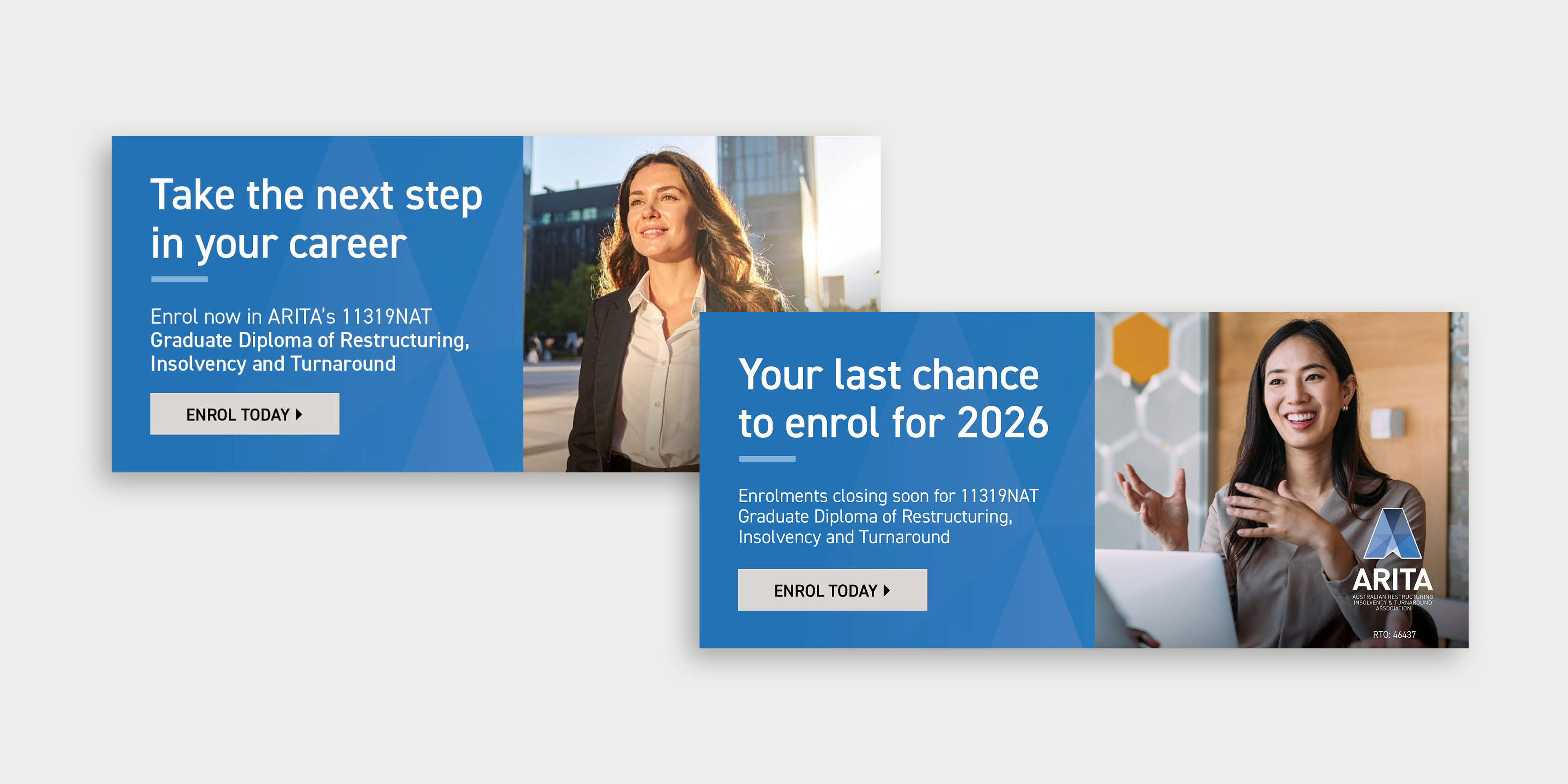 Developed a distinct visual identity and marketing collateral for ARITA's new Graduate Diploma of Restructuring Insolvency & Turnaround course, within the existing brand framework following the organisation gaining Registered Training Organisation status.